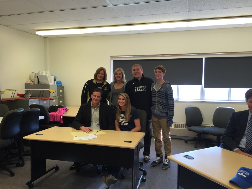 Next was Lindsey Weber the 5’11 Small Forward signed her letter of intent to play for NCAA D2 University of Minnesota Crookston. Lindsey has been a member of the Wisconsin Lakers for 3 years, and played this summer for Lakers Black. Basketball runs in the Weber Family Lindsey’s older sister is on a Full Ride scholarship to CBU, and her dad JJ played for the Wisconsin Badgers.
